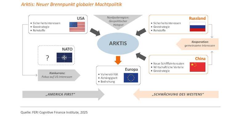 Mit dem Cognitive Briefing „Kampf um die Arktis: Globaler Wettlauf um Rohstoffe, Macht und strategische Dominanz“ gibt das FERI Cognitive Finance Institute Investoren und Unternehmern tiefe Einblicke in die rapide Transformation der Arktis und unterstützt bei der Einordnung und Bewertung der Implikationen. Die Analyse steht zum Download auf dieser Seite zur Verfügung.