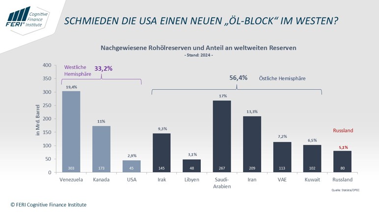 Venezuelas Rohölreserven und die Ressourcen Kanadas befeuern Trumps energiepolitische Ambition. Denkbar wäre ein neuer „Öl-Block“ als Gegengewicht zur OPEC – mit spürbaren Folgen für den globalen Ölmarkt, aber zum Vorteil der US-Wirtschaft.